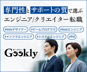 GeeklyはITやWeb、ゲーム業界に特化した転職エージェントです。